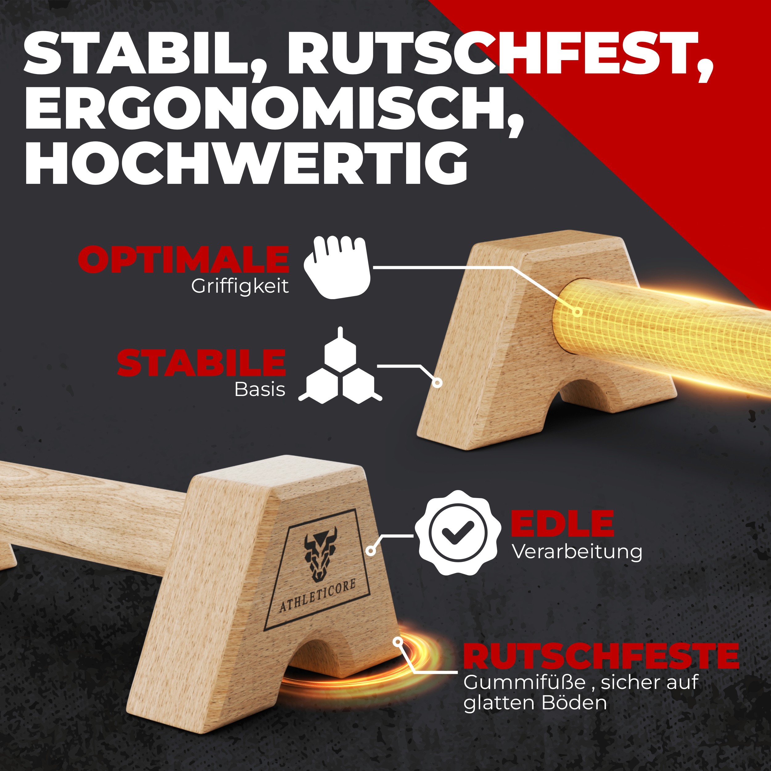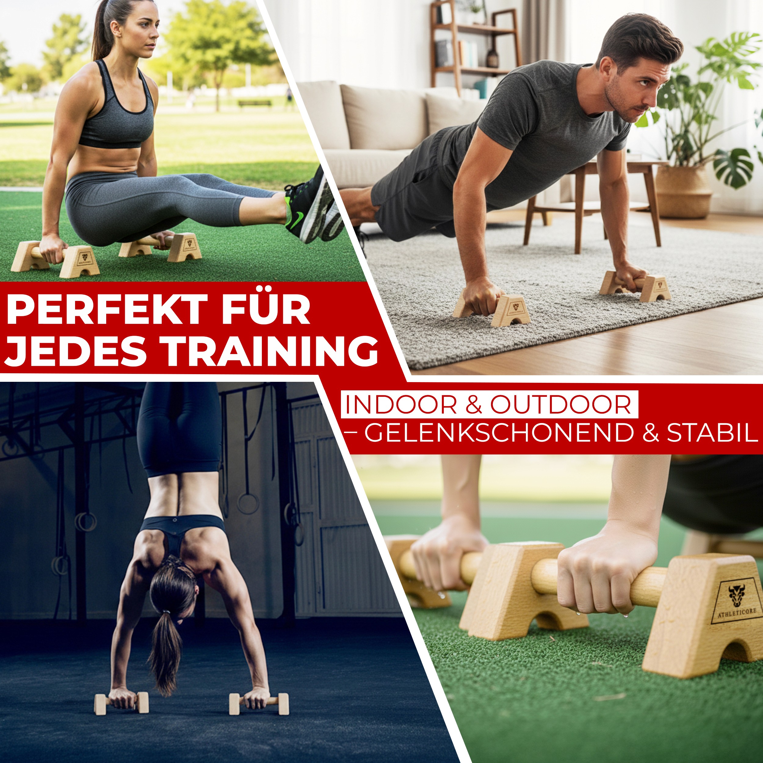 Leading the visual design for ATHLETICORE, I developed a creative strategy for their premium wooden parallettes that emphasizes strength and professional utility. I focused on communicating superior build quality and stability through dynamic marketing visuals. By designing a cohesive visual framework, I was able to highlight key technical details in a way that resonates with serious fitness enthusiasts.